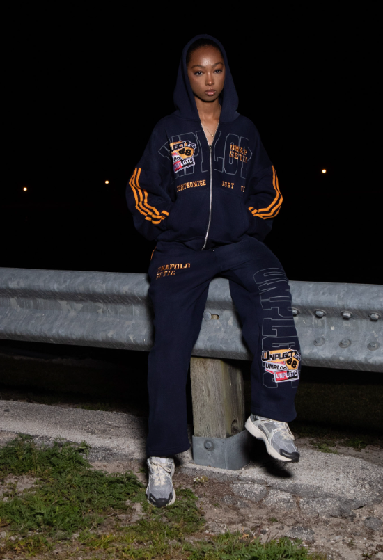Fit: Featuring an oversized, structured silhouette with a slightly tightened waistband to hold its shape. The hexagonal pocket adds a contemporary edge, while adjustable zip pulls offer versatile styling—wear it fully zipped for a clean look or partially open for layered expression.